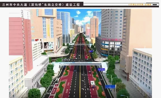 中央大道西起西固深溝橋東橋頭,東至東崗立交西側(cè),道路全長24.297公里,路幅寬度全線基本按照50米改造,設(shè)置為雙向8車道,包括2條公交專用道,設(shè)置5至6個(gè)廣場,整體按智慧道路進(jìn)行設(shè)計(jì)。