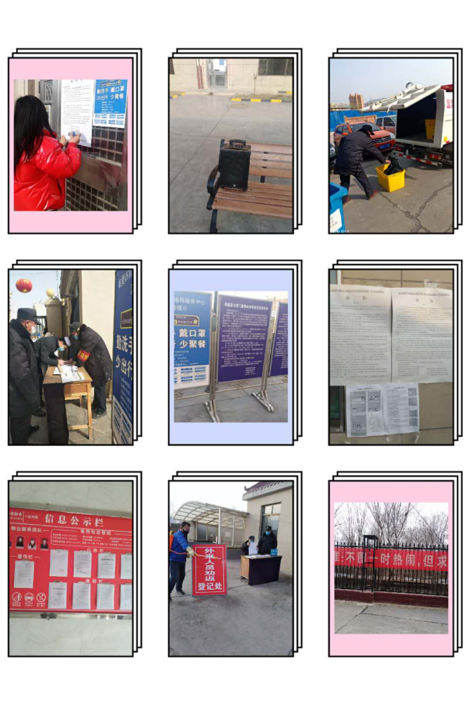 物業(yè)公司通過在小區(qū)、樓道張貼各類通知、通告,利用橫幅、展板等方式加強(qiáng)防控政策宣傳。為防止外來人員進(jìn)入小區(qū), 降低病毒傳染的可能性,社區(qū)工作人員與我物業(yè)公司對業(yè)主發(fā)放臨時(shí)出入證和防控宣傳單。提醒業(yè)主盡量少出門、不聚集,對不自覺佩戴口罩的業(yè)主進(jìn)行勸阻,并對進(jìn)出人員開展體溫檢測及登記 。